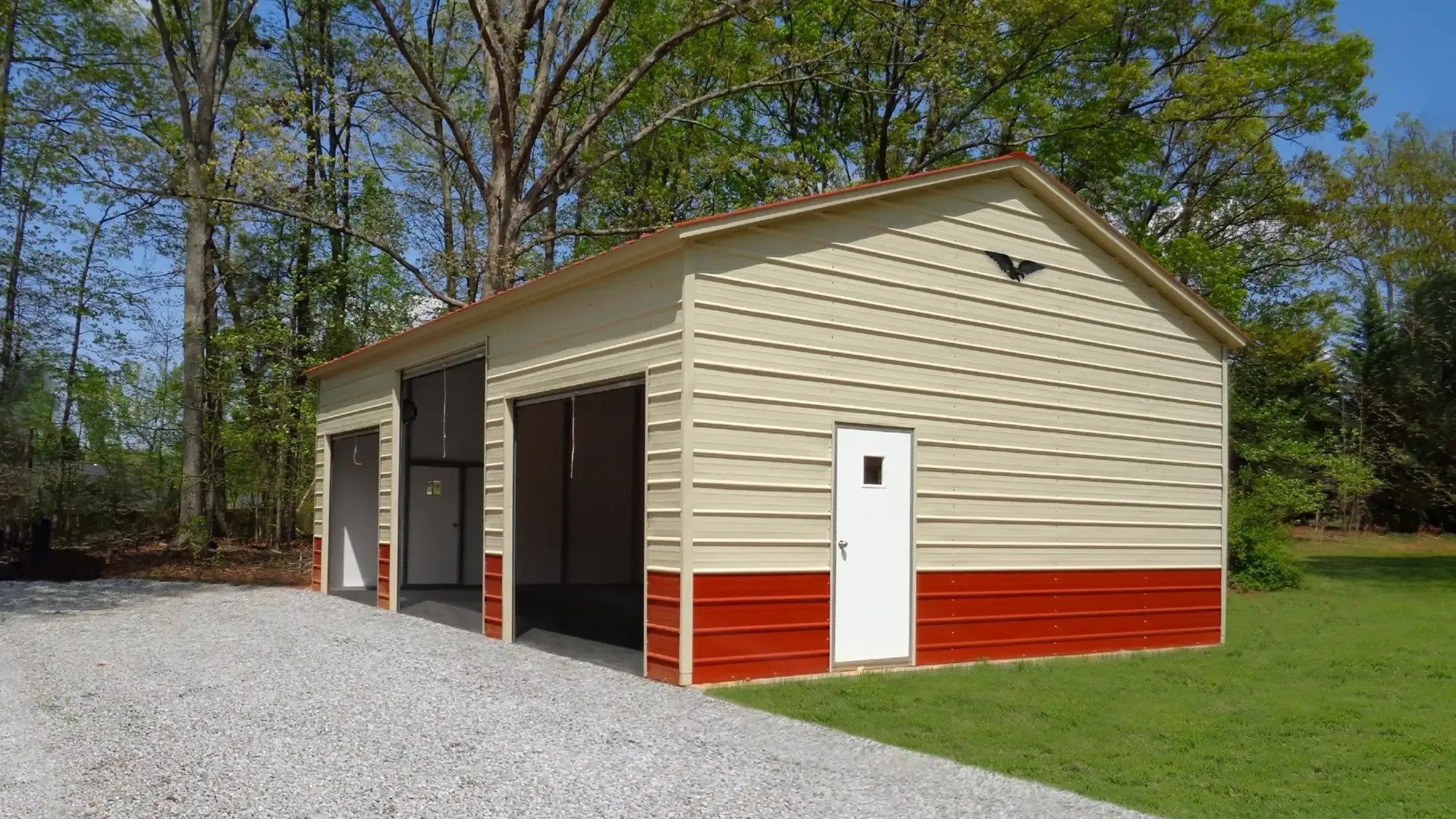 We use 14-gauge, 2” x 3” and 2 1/2"x 2 1/2" galvanized tubing for the mainframe, along with an 18-gauge hat channel (purlins) on the roof and walls. After your sturdy, all-steel structure is completed, we sheet the entire building with 40 year warranted painted galvalume panels. Request a FREE quote by filling out our form now.